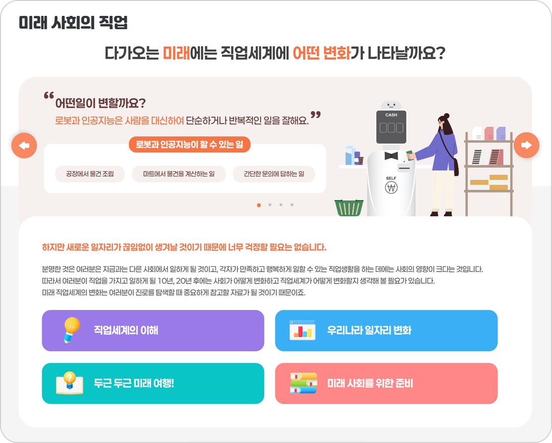 직업 세계의 이해, 일자리 변화, 미래 직업 준비 내용이 새로워졌어요!